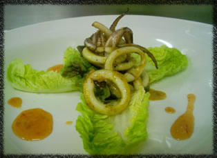 4. To make the sauce, heat the oil in a small pan. Add the garlic and cook until it is just starting to colour. Add the jam, vinegar and chilli. Stir over medium heat until well blended. Thin with a little warm water if necessary. Serve with the calamari rings.