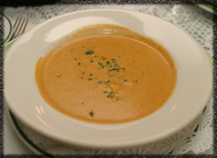 for about 5 minutes. Stir in the flour and cook,stirring 1 minute. Then add the strained lobster broth and whisk until smooth. Cook gently about 20 minutes, until the vegetables are tender.Puree soup in a blender or food processor. Return it to the heat and add the cream.