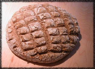 Mix the yeast in 1/2 C of the water at blood heat, and leave 15 minutes to proof. Sift the mixed wheat and rye flours into a mixing bowl to warm.